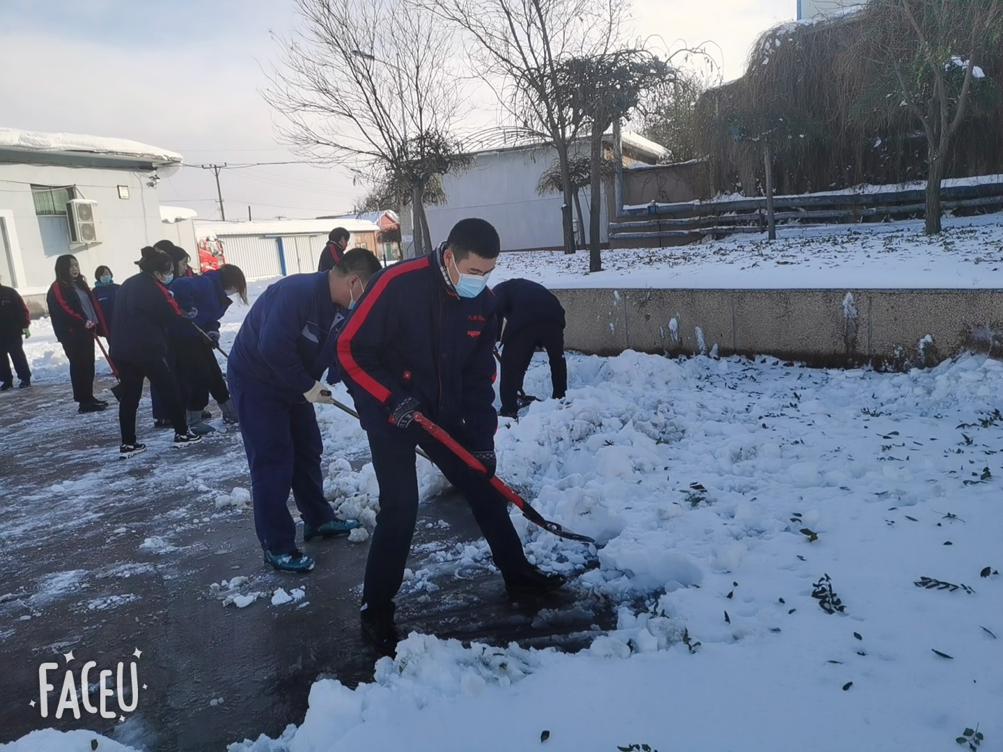 踏著厚厚的積雪,大家不畏嚴(yán)寒,積極主動(dòng),在郭總的現(xiàn)場(chǎng)指揮下全力以赴地投入到掃雪工作中。包裝中心員工在郭崇、劉斌帶領(lǐng)下和張大為帶領(lǐng)的運(yùn)輸班利用鐵鍬、笤掃等工具,不怕臟累,你鏟我掃,清理出從新樓到食堂的道路。董事長(zhǎng)看到后,深情的問候他們一聲辛苦了。綠花班在李乃平的帶領(lǐng)下清理了辦公樓前等道路積雪。盡管大家的臉都凍得通紅通紅的,但手中的掃雪工具卻不停的揮舞著,掃雪的隊(duì)伍成了一道靚麗的風(fēng)景線,給2021的冬天增添了一份別樣的溫暖,經(jīng)過六個(gè)小時(shí)的浴“雪”奮戰(zhàn),公司通往食堂的路面積雪和院內(nèi)的大部分積雪均清理干凈。